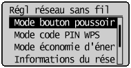 Sélectionnez <Réglages réseau sans fil> et appuyez sur