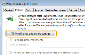 Pour procéder à l'opération suivante, connectez-vous à l'ordinateur à partir d'un compte d'administrateur. Il peut être impossible d'installer les pilotes par le réseau selon le système d'exploitation et l'architecture (32 bits ou 64 bits) du serveur d'impression et des ordinateurs clients. Lorsque vous mettez en œuvre un serveur d'impression dans l'environnement d'un domaine, consultez votre administrateur réseau. |