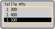 Dans la plupart des réseaux Ethernet, la taille maximale d'un paquet pouvant être envoyé est de 1 500 octets. Un paquet représente la portion des données selon laquelle les données d'origine sont divisées avant d'être envoyées. L'unité de transmission maximale (MTU) varie d'un réseau à l'autre. Modifiez les réglages de l'appareil au besoin. Pour plus d'informations, contactez votre administrateur réseau.