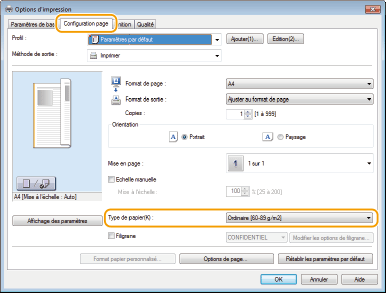 Paramètres papier de l'appareilAvant toute impression, il est nécessaire de définir le format et le type du papier chargé dans chaque source. Spécification du format et du type de papier |