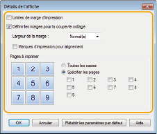 [Spécifier les pages] : effectuer l'impression d'affiche uniquement pour les pages sélectionnées.