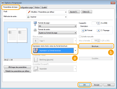 Cliquez sur [Brochure] pour spécifier les éventuels réglages détaillés