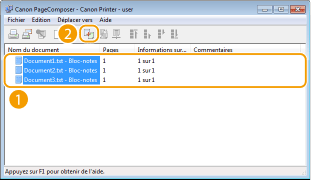 | | Canon PageComposer permet de combiner plusieurs documents en une seule tâche d'impression et de l'imprimer conformément aux réglages d'impression sélectionnés. Cette fonction permet ainsi de combiner des documents issus de différentes applications et d'imprimer toutes les pages au même format de papier. |