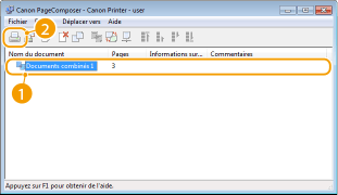 Dans la liste [Nom du document], sélectionnez les documents à combiner et cliquez sur