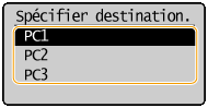 ![]() | Placez un document sur l'appareil et appuyez sur : la numérisation commence instantanément. Le type de numérisation (couleur ou noir et blanc), le dossier de destination du document et d'autres paramètres peuvent être enregistrés sur une touche. Les documents sont alors numérisés selon ces paramètres. Cette section décrit la manière d'enregistrer les paramètres sur une touche et de numériser le document par le biais de la touche considérée. |