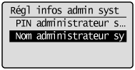 1 | Sélectionnez <Nom administrateur système> et appuyez sur .![]() |