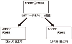 [LFのみ]を設定した場合、改行コードを受信すると、印字ヘッドは次の行へ垂直に移動して水平方向の位置は変わりません。(次の行の先頭には戻りません。)