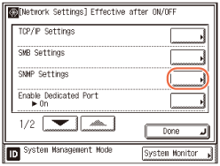 If you want to use a Canon printer driver or utility, select ‘On’ for both [Use SNMP v. 1] and [Enable Dedicated Port] (for IPv4 only).