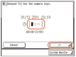 Si l'opció Confirmar números de fax introduïts de Restringir funció d'enviament està activada, cal que torneu a introduir el número de fax per confirmar-lo. Introduïu el número de fax que vau introduir al pas 5 → premeu [Acceptar]. (