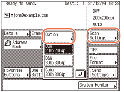 Podeu especificar el mode de color i la resolució dels originals llegits per enviar. L'opció de mode de color permet seleccionar entre llegir els originals en color o en blanc i negre. L'opció de resolució permet enviar documents amb imatges i text detallats i clars modificant la resolució de baixa a alta. Com més alta sigui la resolució, millor serà la qualitat dels documents, però més llarg serà el temps d'enviament.