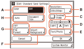 Permet especificar la resolució dels originals llegits. (Especificació del mode de color i la resolució)