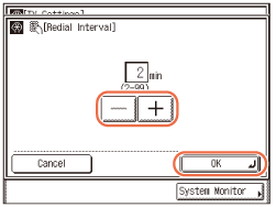 Premeu [-] o [+] per establir l'interval per a remarcatge → premeu [Acceptar].