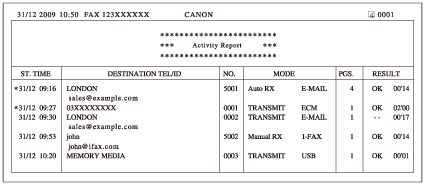 Si està establerta la gestió d'ID de departaments, s'imprimeix l'ID de departament. Totes les transaccions d'enviament i recepció s'enumeren en funció de l'ID de departament.