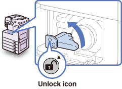 ) de la palanca de bloqueig està alineada amb la fletxa cap amunt ( ) de la icona Desbloquejar abans de procedir. |