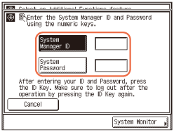 You must set both System Manager ID and System Password to manage the operations of the machine.