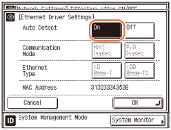 The default setting is ‘On’. Use the [Off] setting when you want to specify a particular Ethernet setting.