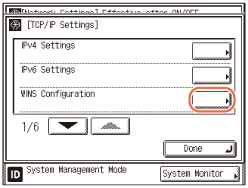 If you set [DHCP] to ‘On’ on the IP Address Settings screen, the IP address of a WINS server you set manually will be overwritten, whenever possible. (Setting IPv4 Address)