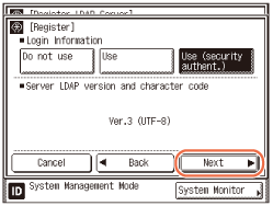 Select the LDAP version and character code according to the LDAP server’s environment → press [Next].
