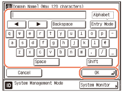 Press [Domain Name] → enter a domain name → press [OK].