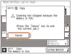 Premeu [Cancel·lar] per cancel·lar el treball. L'equip torna a la pantalla superior.