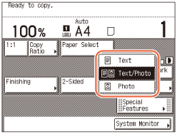 Ako je odabran jedan od tri moda (Tekst, Tekst/Foto ili Foto) mod automatskog podešavanje gustoće kopija nije dostupan. Ako je potrebno, gustoću kopija podesite ručno.