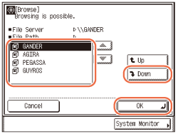 Odaberite željeni datotečni poslužitelj → pritisnite [Dolje] ili [OK].
