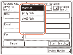 Ako je aktivirana funkcija Slanje (opcionalno za imageRUNNER 2525/2520) te je na uređaj priključena Super G3 faks kartica-AG1 možete sortirati i ograničinit pregledavanje prikazanih adresa uporabom padajućeg izbornika tipova.