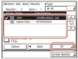Upišite naziv, e-mail adresu ili broj faksa → pritisni [OK].