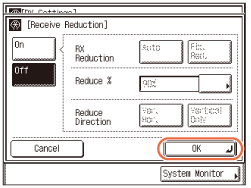 Pritisnete li [Isključeno], primljeni dokument ne smanjuje se automatski na format papira. Ukoliko format primljenog dokumenta prelazi ispisno područje, slika se dijeli na jednake dijelove i ispisuje na zasebnim listovima papira.