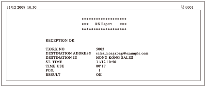 Ukoliko su dokumenti uspješno primljeni, ispisuje se "OK". Ako je došlo do greške u prijenosu, ispisuje se "NG (Nije dobro)" i kod pogreške.