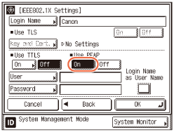 Before you select the IEEE802.1X Settings, make sure that the required key pairs and digital certificates are registered in the machine. (Managing Key Pairs and Digital Certificates)