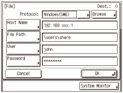 If the language of the touch panel display differs from the computer on your network, [Host Name] and [File Path] may not be displayed correctly, or you may not be able to browse the directories.