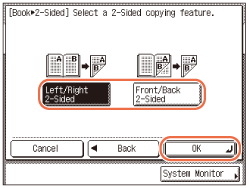 Tryk på [Bogtype] eller [Kalendertype] for at vælge retningen for originalerne og kopierne → tryk på [OK] → [OK].