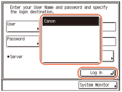 Vælg det servernavn, du vil logge på, på dropdown-listen Server → tryk på [Log på].