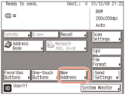 Vælg [Ny adresse] → vælg [E-mail], [I-Fax], [Fil] eller [Fax].