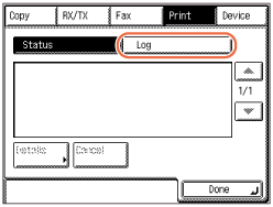 Hvis Joblog-display i Systemvalg er sat til ‘Fra’, vises skærmbilledet Printlog ikke på skærmbilledet Systemmonitor. For instruktioner om at indstille Joblog-display kan du se Protecting the Machine from Unauthorized Access.