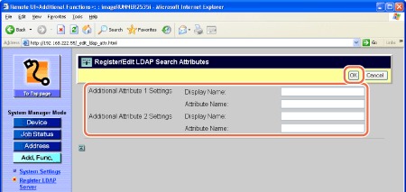 Specifying the LDAP server settings is available only when the Remote UI is in the System Manager Mode.