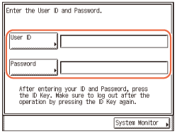 Press [User ID] → enter the User ID of the user registered as the System Manager → press [OK].