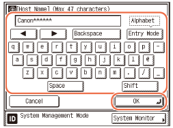 Press [Host Name] → enter the name of the machine as the host name → press [OK].