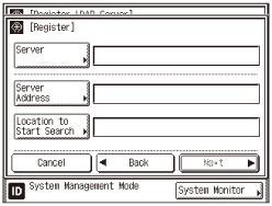 ] until [Register LDAP Server] appears → press [Register LDAP Server].
