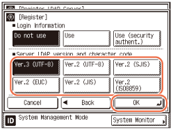 Select the Server LDAP version and character code → press [OK].