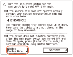 Når problemet med finisheren er løst, skal du deaktivere statussen Begrænsede funktioner fra menuen Yderligere funktioner. (Indstilling af statussen Begrænsede funktioner)