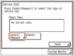 For at anmode om reparation fra touchpanelet skal maskinen være konfigureret på forhånd. Du kan få nærmere information hos Canon Danmark.