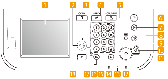 Druk op deze toets om functies te gebruiken als Scan op afstand, Media-afdruk, Beveiligd afdrukken, enz. (Zie de Help-functie op de Color Network ScanGear en