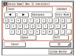 Alltoodud toimingus kasutatakse tähtede sisestamise näitena Seadme nime menüüd. (Other System Settings)