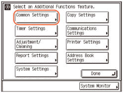 Vajuta Seadme oleku menüü määramiseks Süsteemi monitori vaikemenüüks. (Kui vajutad [Süsteemi monitor], kuvatakse Seadme oleku menüü.)