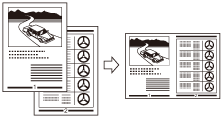 Vajuta automaatselt kahe või nelja originaali vähendamiseks ühele ühe- või kahepoolsele koopialehele.