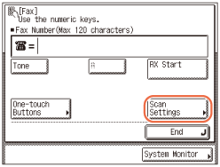 Kui katkestad käsitsi saatmise poole pealt, siis saadetakse vastuvõtjale ainult skaneeritud lehed. Saadetud lehekülgede arvu on võimalik kontrollida sideraportite printimise teel või süsteemi monitori ekraani abil. (Sideraportite printimine, Sidelogi kontrollimine ja printimine)