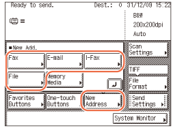 Vajuta [Uus aadress] → vali [E-post], [I-faks], [Fail] või [Faks].