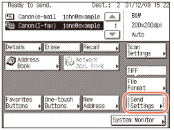 Sõltuvalt <Saatmise piirangu määrangud> alt tehtud määrangutest ei pruugita klahve [E-post], [I-faks], [Fail] või [Faks] kuvada. ( Customizing Settings)